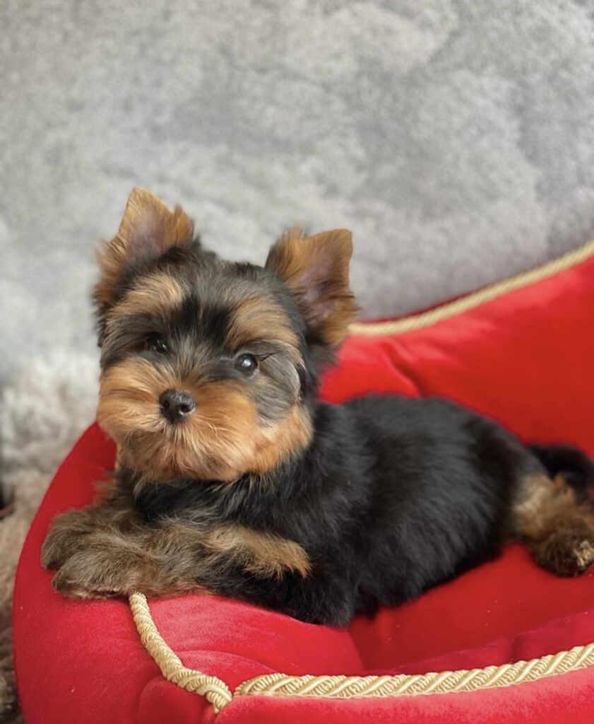 Meet Angel! This lovable pup is searching for a good, loving home to call her own. Whether playing all day or relaxing on the couch, Angel promises to be your most loving companion. This cutie will arrive at her new home up to date on vaccinations and pre-spoiled. Plus, you will get her very own Puppy Book with her care instructions, health records, parents’ pictures, health testing, tips for house training, and photos of her! Angel can’t wait to jump into your arms and shower you with her many puppy kisses! Don’t miss out!